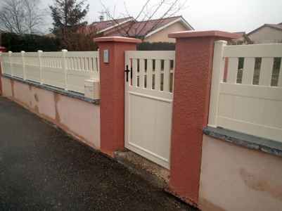 - mur de clôture ou muret surmonté d'un grillage ou d'une palissade (fixation des poteaux sur platine)