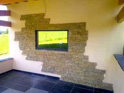- habillage d'un mur avec des plaquettes de parement en pierres naturelles