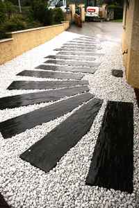 - des galets de marbre blanc de Carrare ou noirs, dans les parterres de massif japonisant