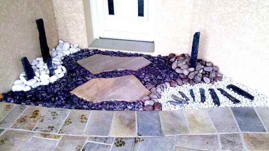 - des gros galets décoratifs de divers coloris, dans les massifs déco minérales