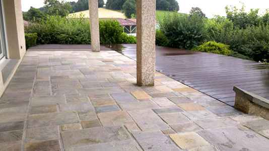 Selon le revêtement de sol extérieur créé, la configuration et l'usage de votre aménagement de jardin, votre paysagiste adaptera l'épaisseur de la pierre naturelle et son type de pose :