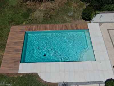 Nouveau : Nous proposons désormais des piscines coques polyester de plus grandes dimensions (6x4 m, 7x3 m, 8x4 m ...) et la réalisation de plancher coulissant comme couverture sécurisée et terrasse mobile.