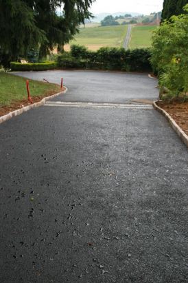 Art Paysage réalise le goudronnage de vos accès, après avoir pris soin de réaliser une bonne assise avec une sous forme en concassé et de gérer les pentes pour le ruissellement des eaux pluviales.