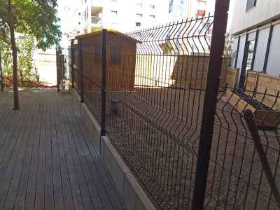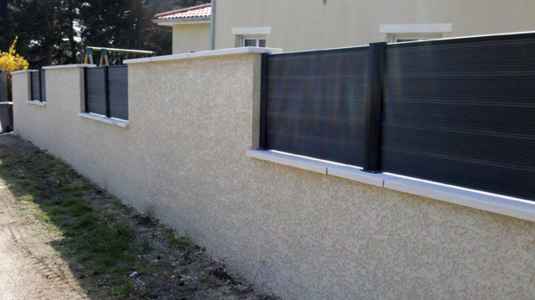 - mur de clôture ou muret surmonté d'un grillage ou d'une palissade (fixation des poteaux sur platine)