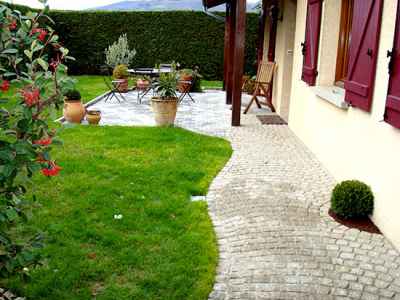 - pavage des cours en pavés de Lyon ou autres pavés en pierres
