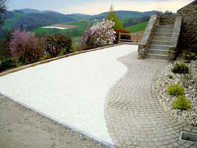 - des galets de marbre blanc de Carrare ou noirs, dans les parterres de massif japonisant