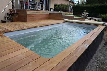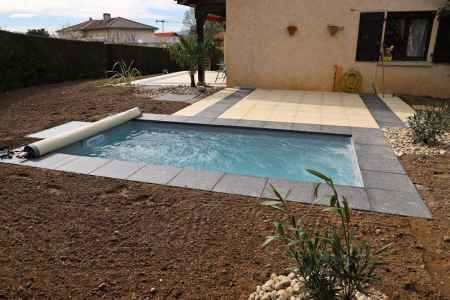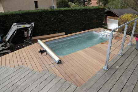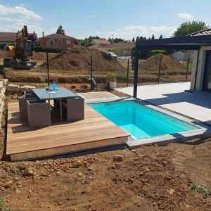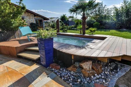 Votre paysagiste des Monts et de l’Ouest Lyonnais vous propose l'installation d’une mini-piscine à coque 100% acrylique thermoformé de qualité, et fabriqué en France dans la région Rhône Alpes Auvergne. Nous réalisons également l’intégration paysagère et l’aménagement des abords de votre piscine : terrasses, plancher bois ou composite, pose sans margelles …