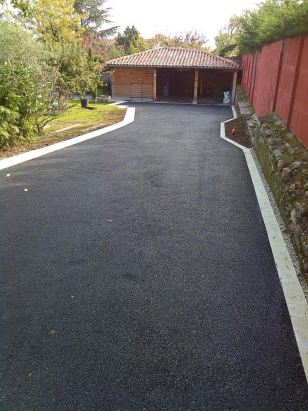 Art Paysage réalise le goudronnage de vos accès, après avoir pris soin de réaliser une bonne assise avec une sous forme en concassé et de gérer les pentes pour le ruissellement des eaux pluviales.