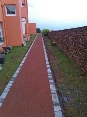 allée en gore rouge compacté avec bordures en pavés gris