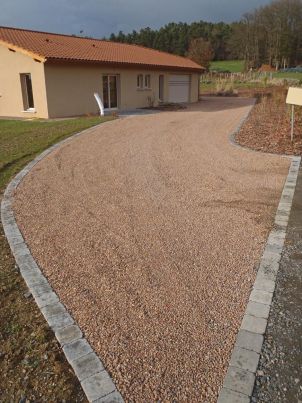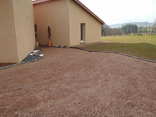 Votre paysagiste des monts du lyonnais Art Paysage, peut également vous proposer la mise en place de gravettes aux coloris variés (blanche, ocre rosé, doré, gris, ...). La mise en place de dalles stabilisateur de graviers, type Nidagravel (alvéoles en nid d'abeilles), entre la sous forme en cailloux concassé et le gravillon de finition permet d'obtenir un sol naturel stable, perméable et drainant.