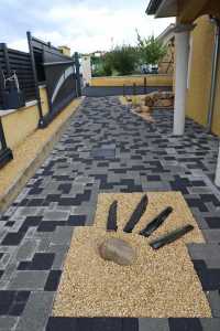 - la pose des pavés les uns contre les autres (dit autobloquants)