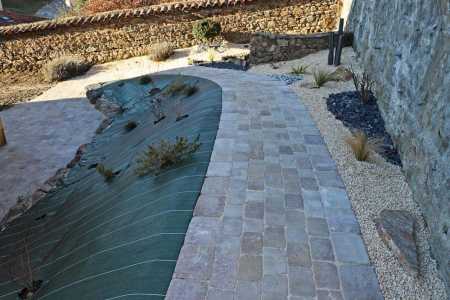 Contrairement à ce qu’on entend souvent dire, la mise en place d'une toile géotextile ou Bidim sous les pavés